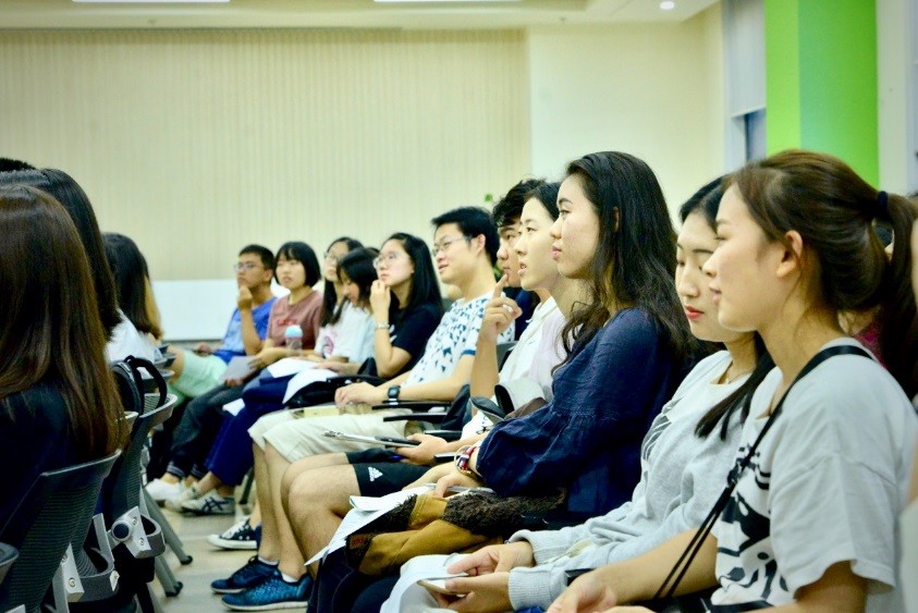 之后,他还与学生分享了中外学生的交流方式的差异,他鼓励学生们在新的环境中要多张嘴练习,尊重别人前提下求同存异;团队合作中彰显个性。之后的报告中,Hillman老师还就中西方教学风格差异和如何应对留学过程中遇到的文化冲击一一分享。学生们不时被他诙谐幽默的风格所打动,整场报告氛围热烈,掌声不断。报告结束后,很多学生意犹未尽,积极与Hillman老师互动。