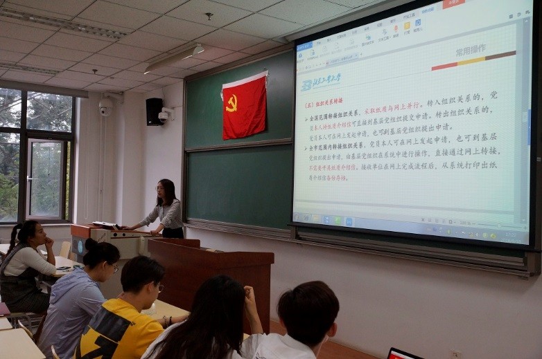培训中,唐昊老师向各位学生党员系统了介绍了北京市基层党建管理平台——“党员E先锋”有关信息采集、审核、校对等方面的内容,让党员充分了解“党员E先锋”操作规范和流程,帮助学生强化党员身份认识、明晰线上组织管理重要性。“党员E先锋”是北京市统一的党员教育管理服务网络平台,党支部和党员个人均可上线使用,记录支部建设过程和支部活动。