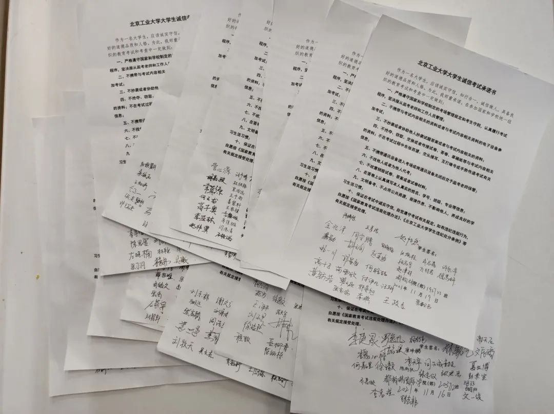 最后,全体同学郑重作出遵守考试纪律、诚信参加考试的承诺,并签署诚信考试承诺书。同学们纷纷表示将秉承诚信的美德,以严谨求实的学习态度,端正考风考纪,严于律己、诚信应考。