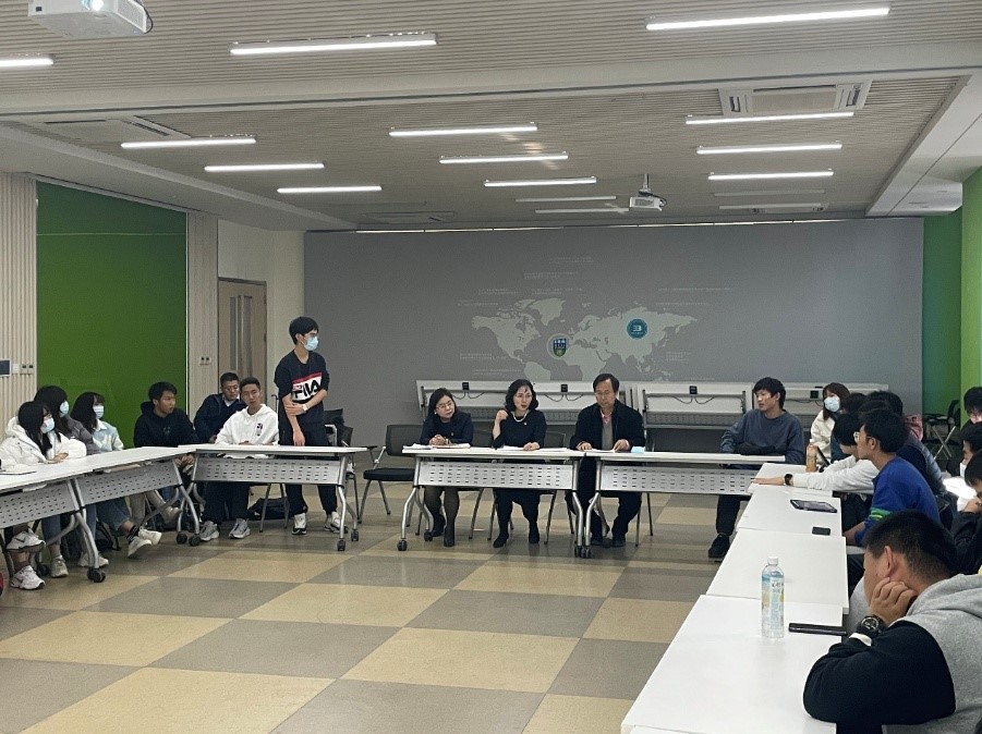 最后,王普教授总结发言。他首先对213741班良好的班风给予了积极肯定,并对英文宣讲团的精彩宣讲提出了表扬。接着,王教授鼓励同学们,要充分发挥双语优势,将英语和专业学习相结合,在未来人才竞争角逐中崭露头角。最后,他表示,跨文化理解和包容能力是未来国际竞争中的核心素养,勉励同学们珍惜学院平台,树立远大人生理想,提升自身学术能力,尽早成长为国际复合型人才。之后,王普教授还分别就两校资源平台、升学考研、科研竞赛等问题与同学们进行深入互动交流。