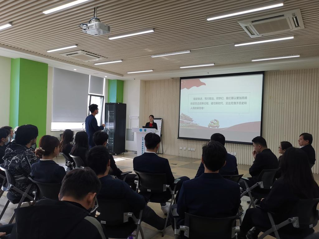 研讨会伊始,党支部书记赵梦琳带领大家一起从不忘初心、牢记使命、不畏艰险艰苦奋斗、不讲条件苦干实干三个方面,结合全会公报内容以及具体实例,学习了党的十九届六中全会精神,并鼓励同学们砥砺奋进、笃行致远,未来不管是在基层一线上苦干实干、在科技岗位上发光发热,还是在国际舞台上绽放光芒,都要牢记自己作为党员“为中国人民谋幸福、为中华民族谋复兴”的初心使命。