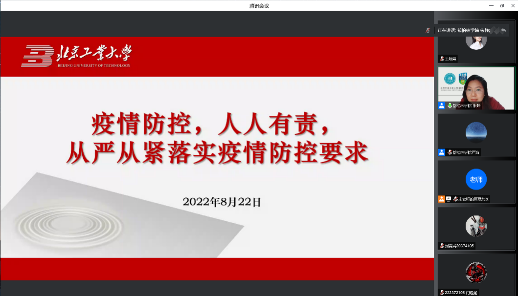 学院党委常务副书记朱静首先对当前疫情形势与防控政策进行解读,要求学院全体师生把“动态清零”总方针落到实处,从严从紧落实首都和学校疫情防控要求。