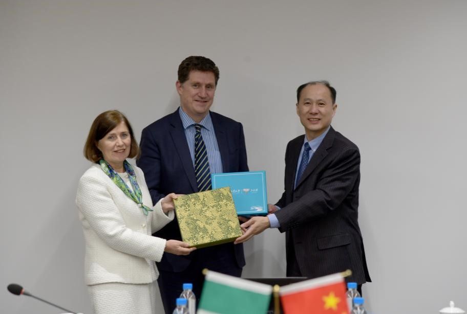 3月16日下午,爱尔兰环境、气候、通讯部及交通部部长埃蒙·瑞安,爱尔兰驻华大使安黛文一行访问天游ty8线路1线路2检测中心。校党委副书记、校长聂祚仁会见爱尔兰来宾,国际交流合作处、天游8线路检测中心入口负责人陪同会见。