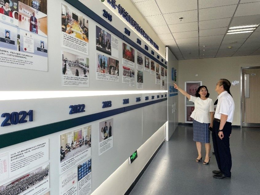 随后,双方围绕调研主题,就办学定位与运行机制、党建工作、教学管理和质量保障、师资队伍建设与管理等方面进行了深入交流,并参观了学院大事记墙、荣誉墙、教师办公室等办学办公场所。双方对此次调研成果给予充分肯定,希望在后续办学过程中加强沟通、深化合作,提升办学水平,共同助力中外合作办学高质量发展。