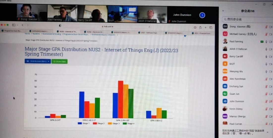 2023年6月13日,天游8线路检测中心入口召开2023年春季学期学院成绩审核委员会议。会议由都柏林学院教务长Paul Fanning主持,党委副书记兼院长吴文英、学院相关领导、各专业协调人、课程协调人和任课教师等成绩审核会委员参加会议。