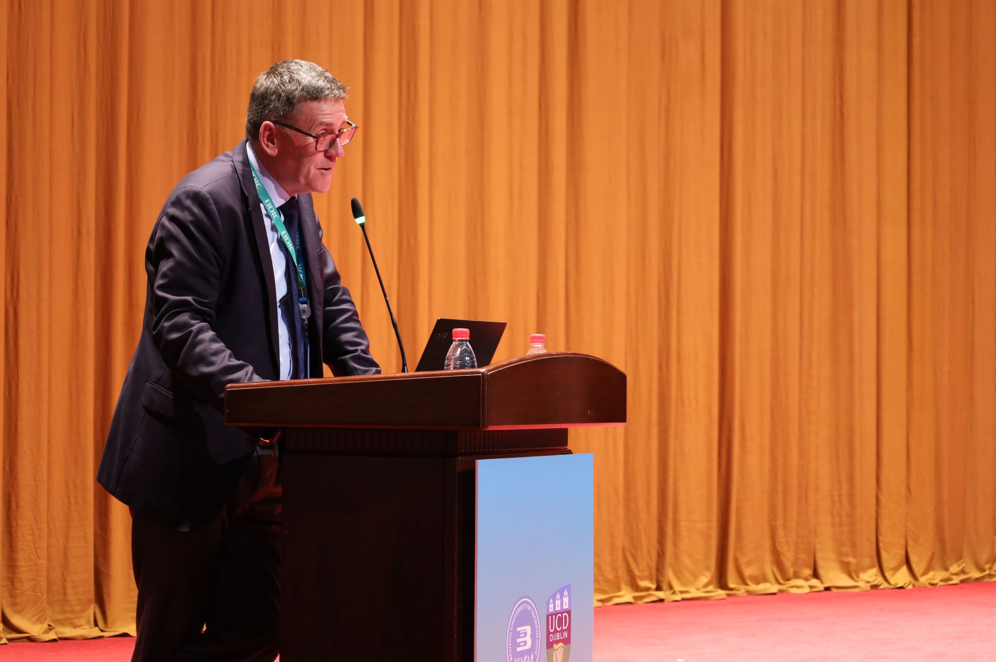 随后,学院教务长 Paul Fanning 介绍了爱尔兰概况、都柏林国立大学教学理念与学籍管理政策等。他指出学院作为都柏林国立大学与中国高校联合创办的第一所中外合作办学机构,正在发挥示范引领作用。都柏林国立大学将进一步开拓教学科研资源,为学生实习、科研提供更多支持。
