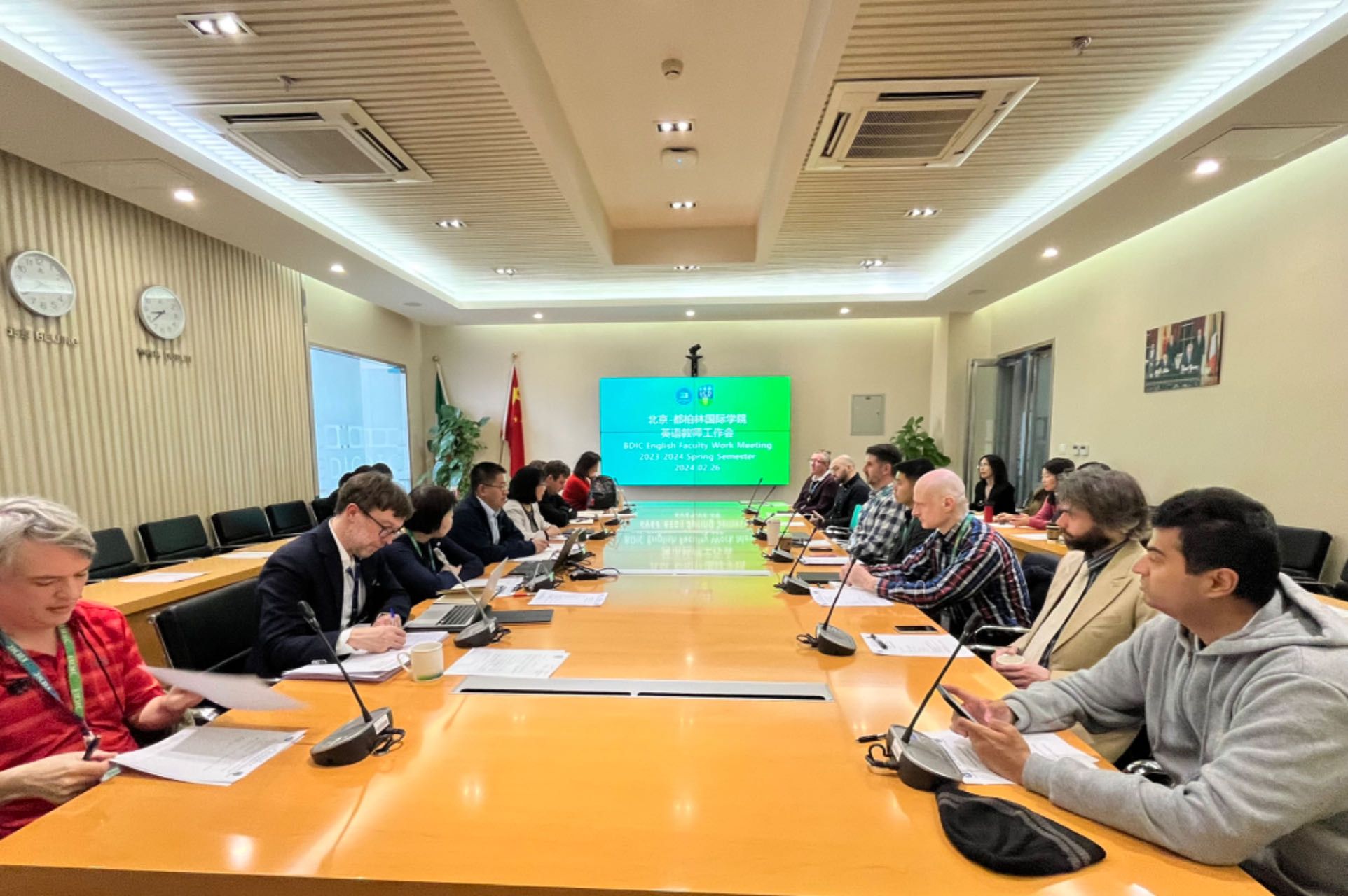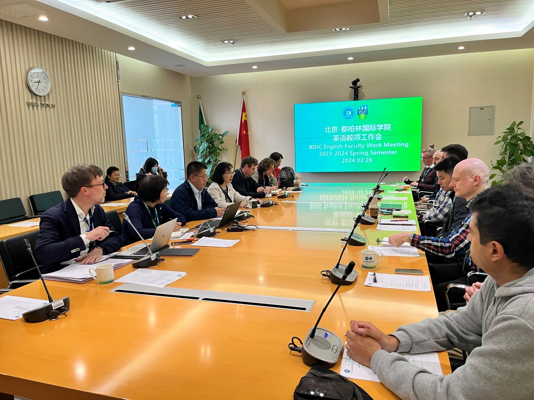 新学期伊始,天游8线路检测中心入口于2024年2月26日在第四教学楼818会议室召开新学期英语教师工作会议。会议由吴文英院长主持,教学副院长孙恩昌、爱尔兰国立都柏林大学英语语言中心Alex Runchman、21名中外英语教师以及教务办公室和师资办公室工作人员参加会议。
