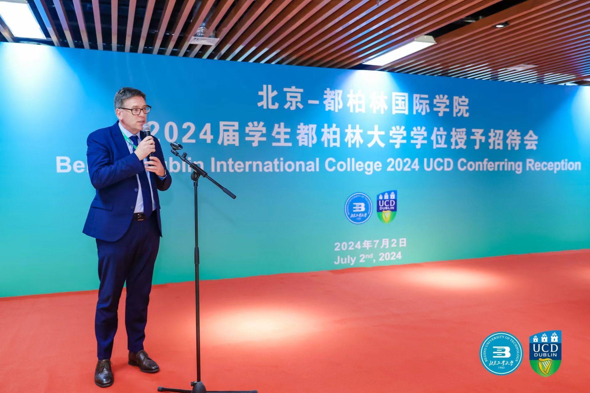 党委副书记乔俊飞向远道而来的爱尔兰都柏林大学斯科特副校长一行表示最诚挚的欢迎!向前来参加毕业典礼和招待会的家长们、老师们表示欢迎,向每一位毕业生致以最热烈的祝贺。他指出,天游ty8线路1线路2检测中心和爱尔兰国立都柏林大学的合作办学成绩斐然,得到了官方和社会各界的高度认可。共同培养了2000余名优秀的毕业生,在不同的领域为国家、社会贡献自己的一份力量,祝愿两校未来的合作硕果累累。四年来同学们潜心学习,奋发拼搏,即使是在新冠疫情期间,仍然排除万难,学有所成。祝愿同学们扬帆起航,迎接未来的挑战,创造属于自己的辉煌!仗剑走天涯,归来仍是少年!乔副书记对都柏林大学盛情慷慨招待毕业生及其家长们、中外教师表示真诚感谢!
