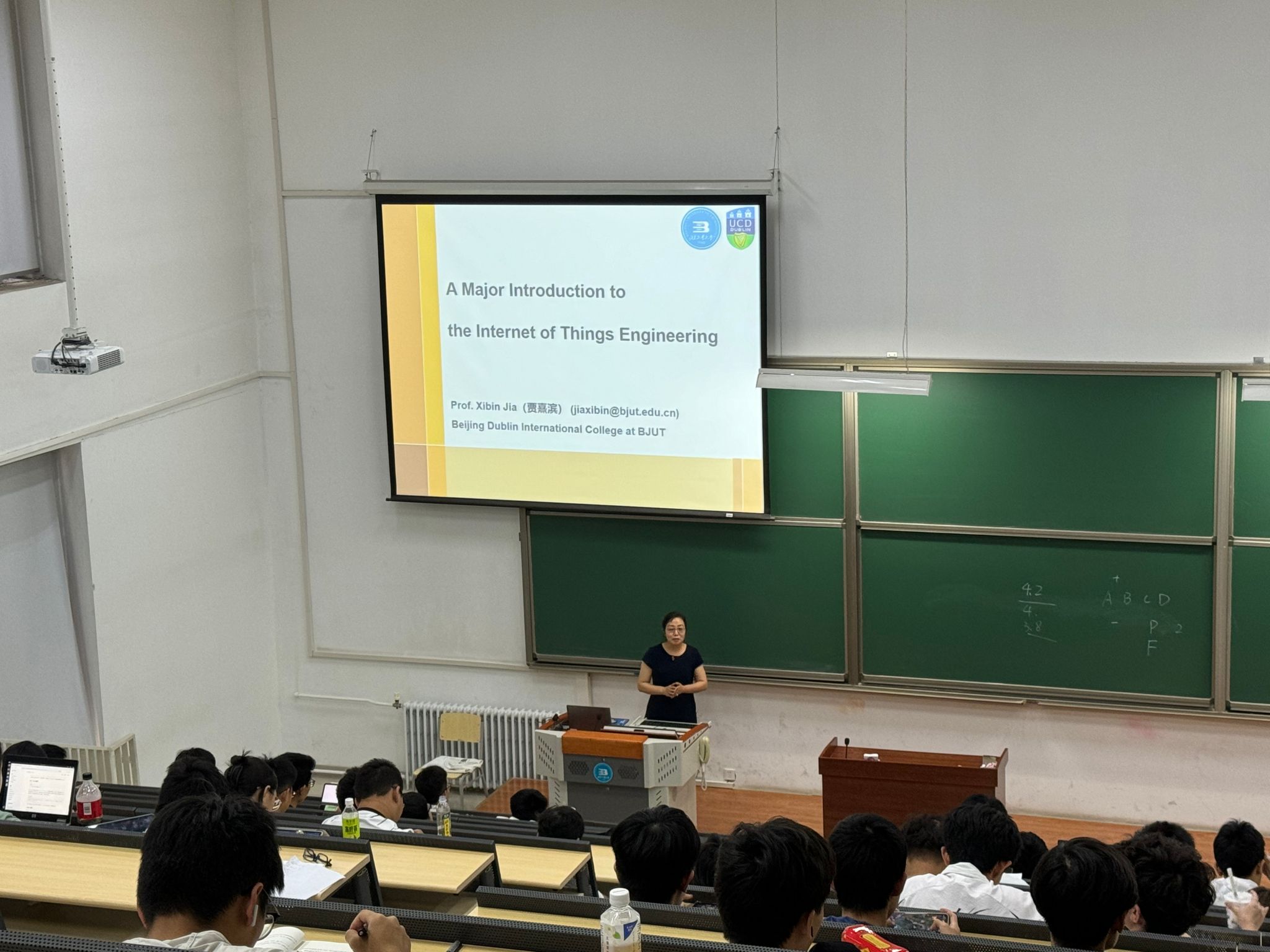 物联网工程专业中方负责人贾熹滨老师通过对物联网技术发展的介绍,向学生展示其发展历程;运用日常生活的应用实例,解释物联网的概念;通过对现有计算机和电子技术的剖析,展现物联网技术的组成,并展望物联网技术在未来的应用。