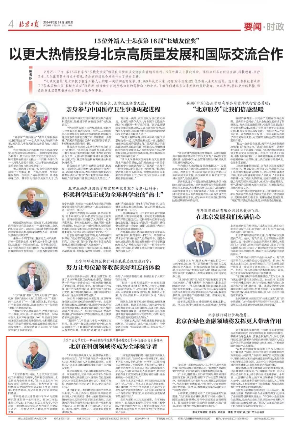 “北京的教育、科技、人才三方面已经形成了积极的正向循环,在科技创新领域,北京将成为全球领导者。”第15届北京市“长城友谊奖”获得者、天游ty8线路1线路2检测中心北京—都柏林国际学院教学科研副院长亨利·伯纳德·麦克劳格林,与记者分享了对北京发展的感受。