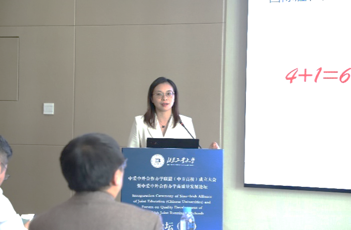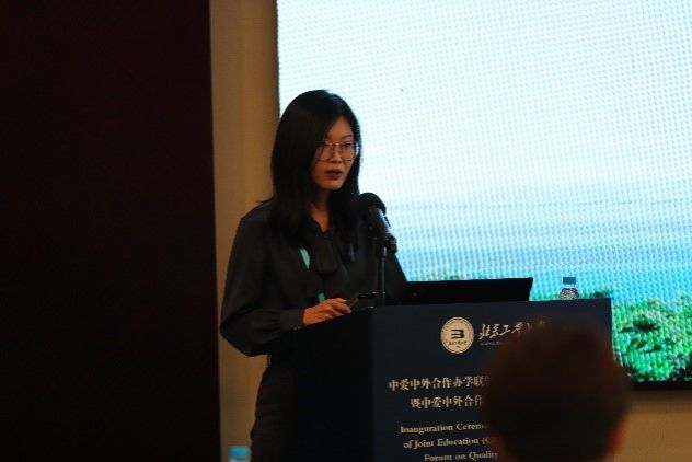 河南牧业经济学院国际交流与合作处处长、卡洛理工国际学院常务副院长赵建华以“做好融合创新、推动优质发展”为主题,分享了卡洛理工学院在中外合作办学方面的创新办学理念。围绕学生培养方案、学院运行机制以及学生服务三个方面详细介绍了学院有机融合中外办学双方优势的经验,提出了在中外合作协同合作的过程中积极探索与创新的实践意义。