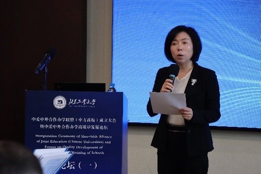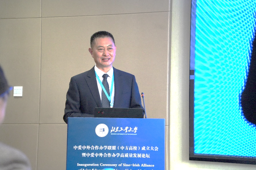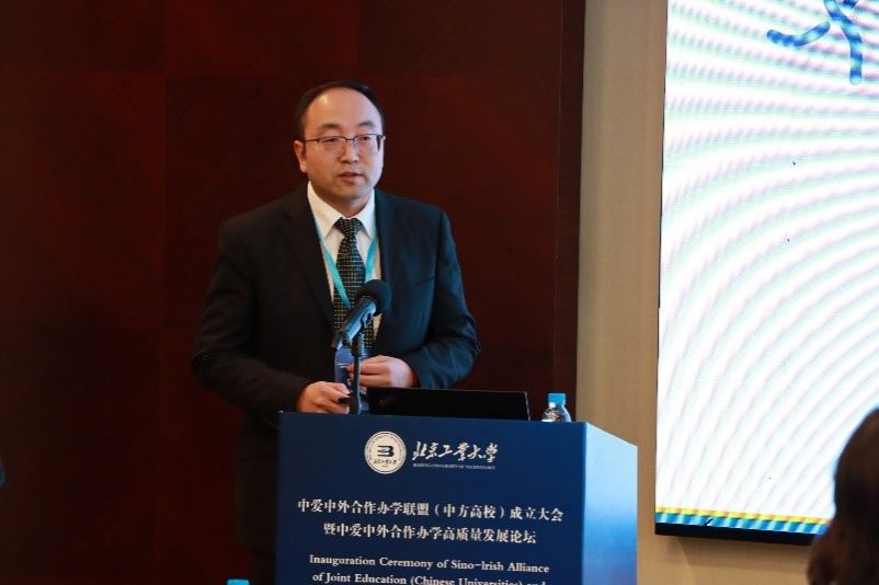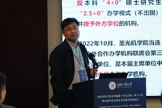 “中爱中外合作办学高质量发展”上午的论坛大会由国际交流合作处处长、国际学院院长司鹏搏主持。