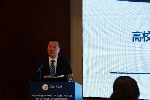 沈阳大学校长、中国教育国际交流协会中外合作办学专业委员会副理事长、全国中外合作办学联席会主席赵彦志作题为《高校联盟在中外合作办学发展中的作用》的主旨报告。他从类别与数量、增长幅度、地区分布、中外双方综合实力、办学模式、学历等级、开设专业、合作国别等8个方面介绍了全国中外合作办学的发展现状。他详细介绍当前中英、中澳、中俄等6个合作办学联盟的情况。他以“中外合作办学联席会”为例阐述了高校联盟的功能和作用,联盟旨在凝聚中外合作办学院校的力量,促进高等学校中外合作办学高质量发展,更好地发挥中外合作办学在推动我国高等教育现代化进程中的重要作用。他希望未来高校联盟能在以下四个方面促进中外合作办学高质量发展:一是依托高校联盟的协同优势,为国别与区域研究提供多方位的交流平台,助力特定国家、特定领域的国别与区域研究。二是开展引进与吸收优质教育资源、建设外部质量保障机制、赋能科技创新平台等系列活动。三是开展智库研究,发布中外合作办学专项权威报告,为中外合作办学事业的发展提供决策、咨询和指导,也为教育主管部门制订相关政策提供依据。四是加强线上、线下全方位人文交流,举办全国性的系列活动,举办竞赛,激发中外师生的创新活力和培养其专项技术能力。举办多种形式的交流活动,促进中外双方师生的沟通了解,加强人文交流。汇聚中外校企资源,拓展学生创新创业能力,吸收利用好国内外优质资源。